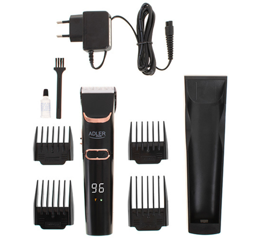 De tondeuse Adler 2832 biedt u een professionele en precieze knipbeurt met behulp van een keramisch mesje. Efficiënte batterijen maken het mogelijk om de tondeuse zelfs voor een paar uur te gebruiken, maar als u dat wilt, kan hij altijd met een snoer worden bediend. De tondeuse kan worden opgeladen met een oplader. Bovendien is de tondeuse uitgerust met 4 verschillende kammen: 3, 6, 9, 12 mm. Op het LCD-scherm is precies te zien hoe lang de accu nog meegaat en wanneer we moeten beginnen met opladen of werken op netstroom.